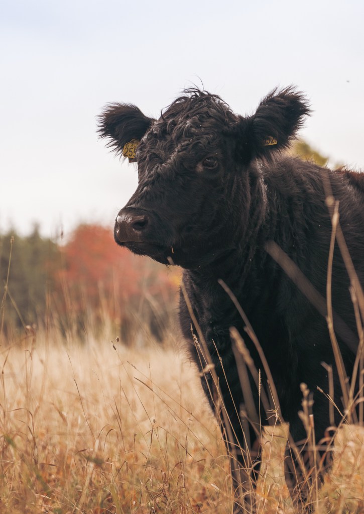 Vi föder upp blandraskvigor som äter gräs på våra fina naturbeten under sin tid hos oss. Under tiden på vintern så får dom ensilage.